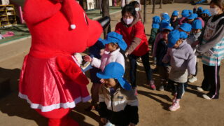 チーバくんが幼稚園に遊びに来てくれました。12月の為クリスマスの洋服を着たチーバくんにお友達も大興奮!一緒にダンスやゲームを楽しんでいきました。自分たちが住んでいる千葉県のこともたくさん知れた素敵な時間になりました。また来年も来てくれると良...